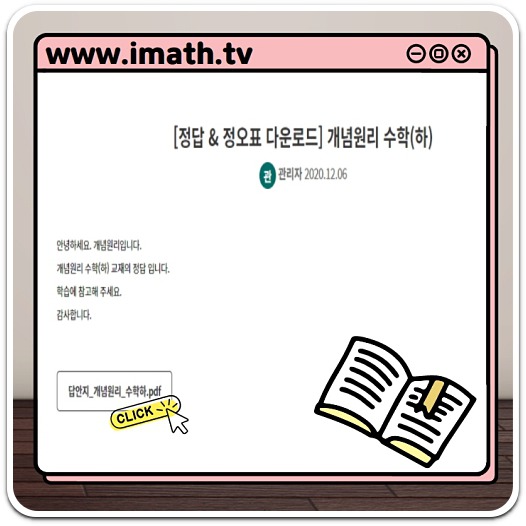 개념원리 수학 하 답지는 회원가입 및 로그인 없이도 출판사 홈페이지를 통해 누구나 손쉽게 무료로 다운로드 받을 수 있습니다.